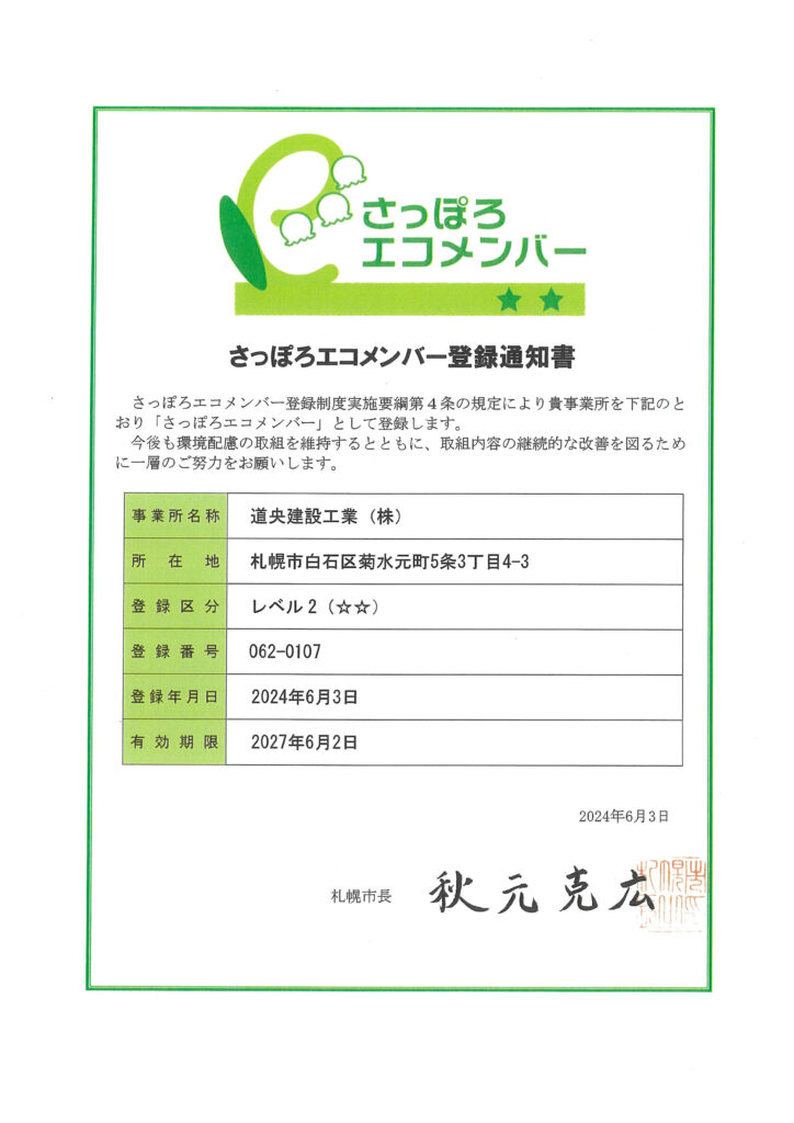 さっぽろエコメンバーレベル2として登録しております。